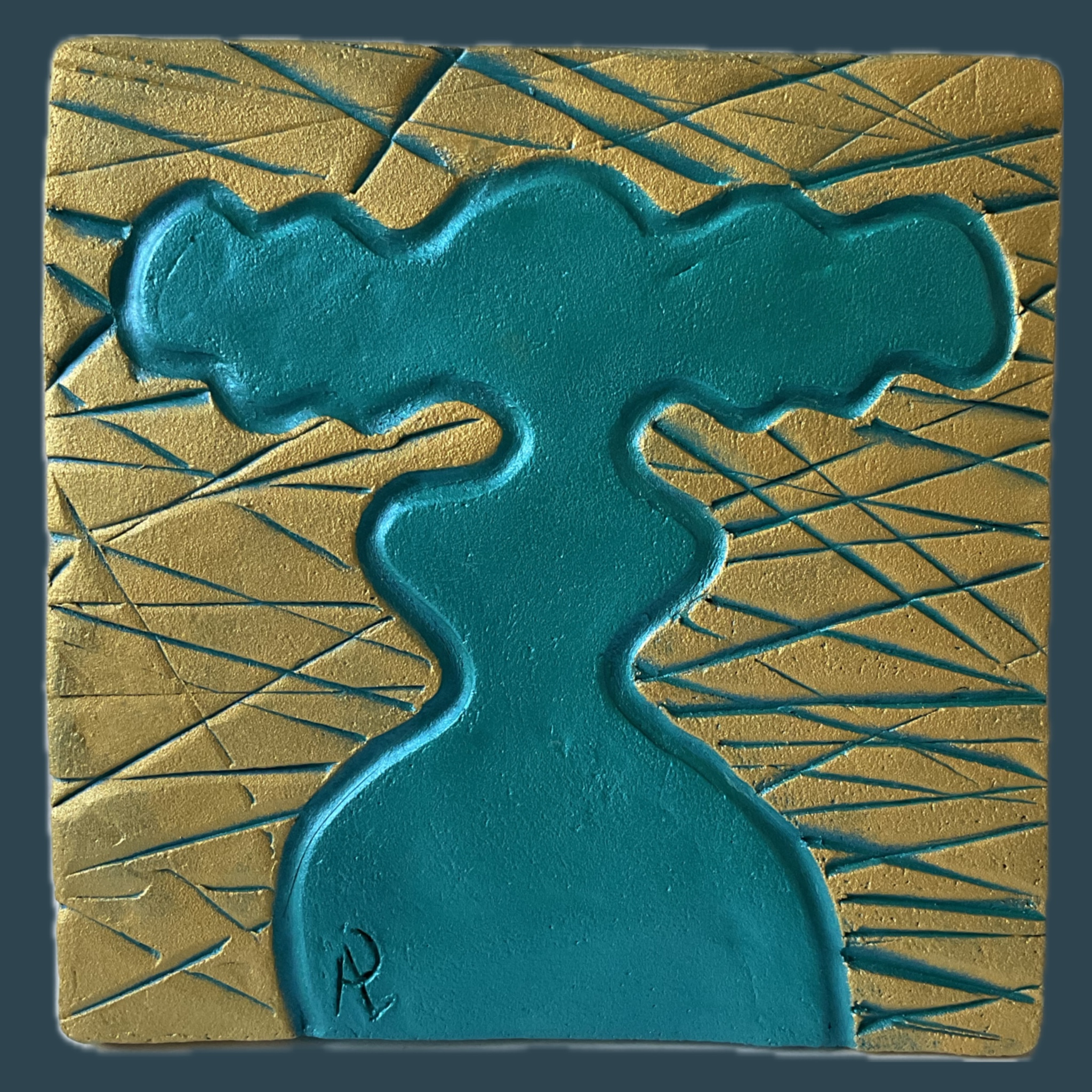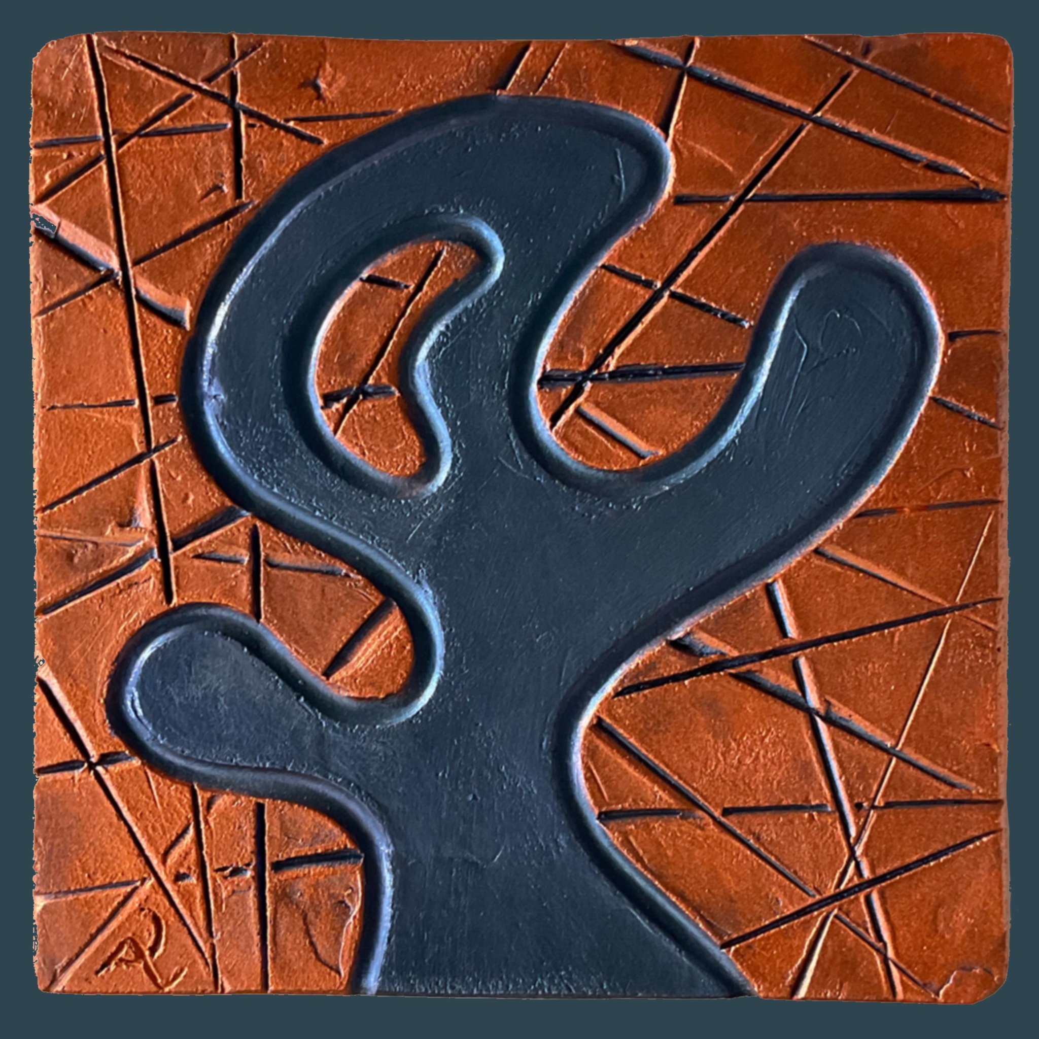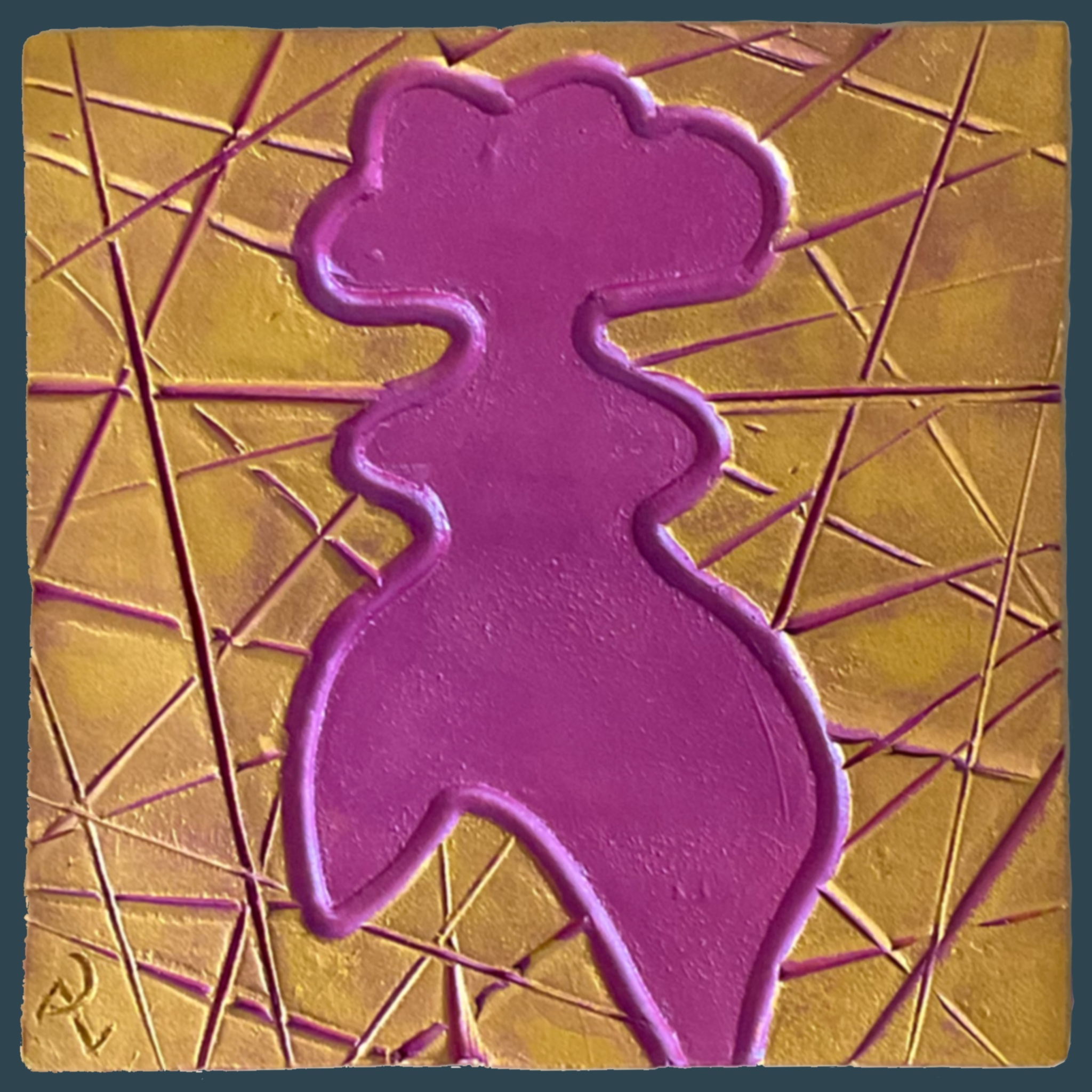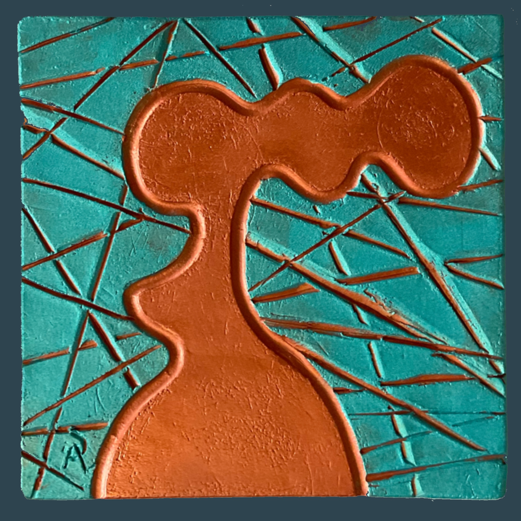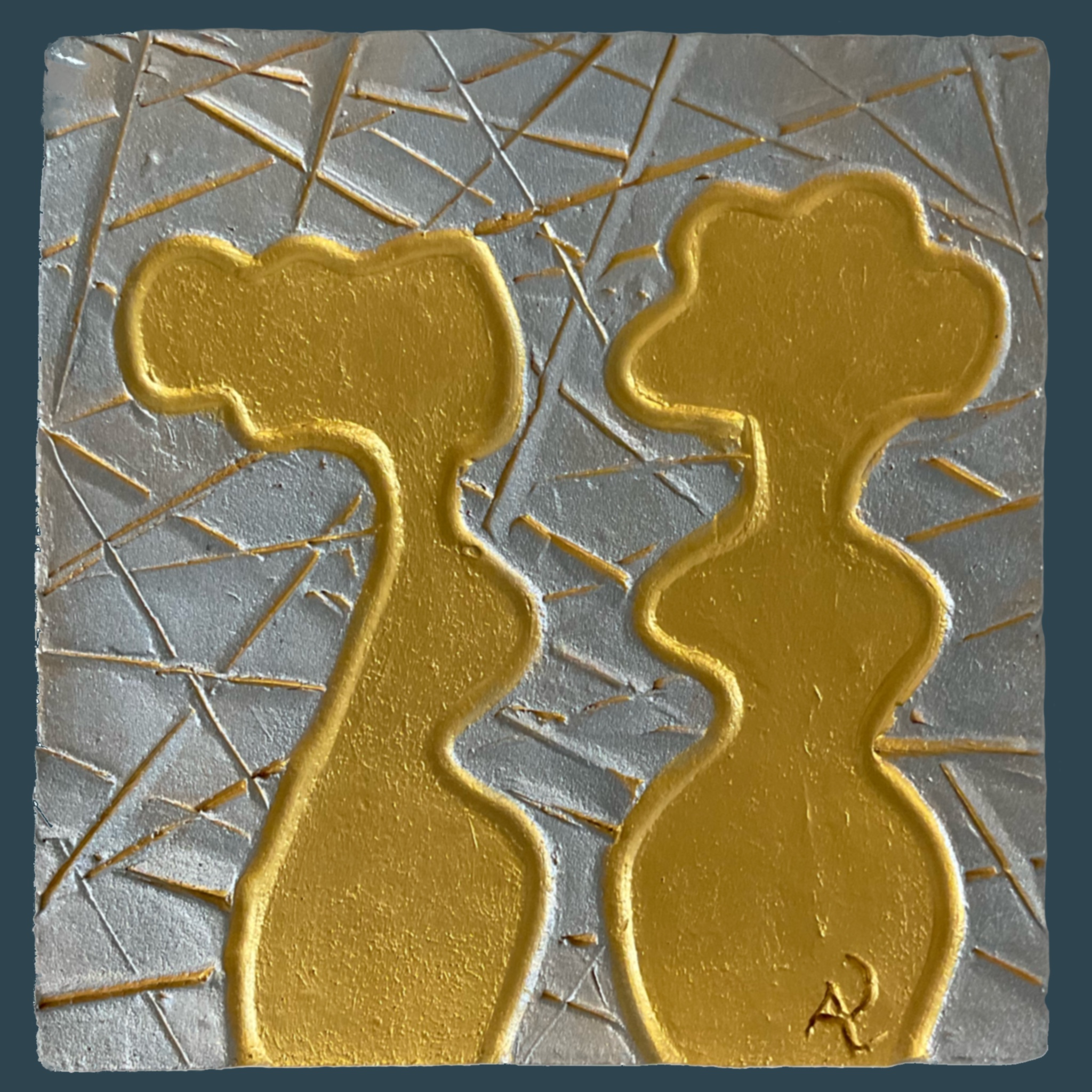 J’ai repris le contraste couleur / matière des silhouettes et appliqué sur des bas-reliefs de 20 x 20 cm toujours